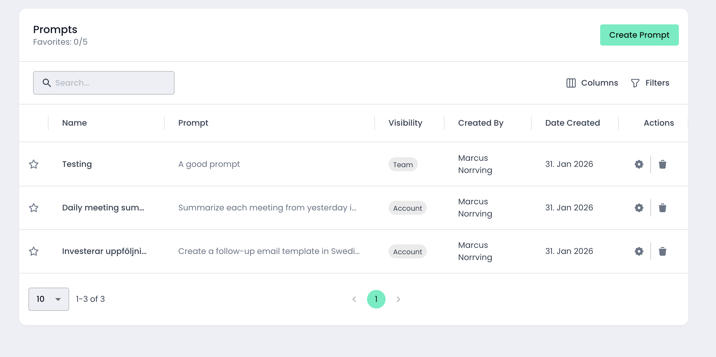 You can create a shared library of prompts that are available across meetings, companies, and the main AskGarba interface.
